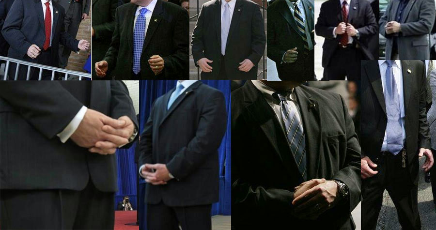 of the Presidential Protective Detail along with a radio, palm microphone and earpiece. The radio is wired into a