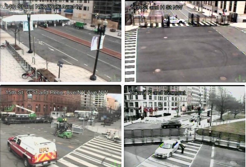 The traffic webcams were provided by the District Department of Transportation (DDOT). The map shows the location of the six cams nearest the White House. To view these and other traffic cams in the city, click on the map below.